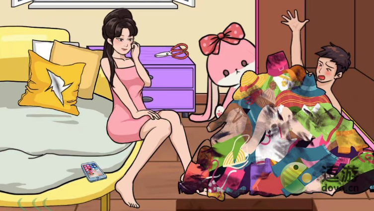 2、然后拖动剪刀到枕头处,点击露出的衣服